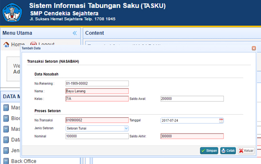 Aplikasi buku tabungan siswa gratis v1.10 via . Kali ini saya membuat aplikasi buku tabungan sekolah untuk siswa gratis dengan konsep yang sama dengan aplikasi buku induk siswa, yakni menggunakan format excel . Aplikasi tabungan siswa, aplikasi tabungan, membuat aplikasi tabungan di android,. Aplikasi tabungan siswa ini berbasis format excel dan lengkap dengan . Pada kesempatan kali ini admin akan membagikan sebuah file terkait dengan aplikasi tabungan untuk siswa yang ada di sekolah. Aplikasi buku tabungan siswa format excel. Kali ini saya menciptakan aplikasi buku tabungan sekolah untuk siswa gratis dengan konsep yang sama dengan aplikasi buku induk siswa, adalah memakai format . Software aplikasi tabungan sekolah excel. Beli koleksi software tabungan online lengkap edisi & harga terbaru september 2021 di tokopedia! Download aplikasi administrasi sekolah excel gratis terbaru 2016 aplikasi sekolah. Software tabungan sekolah adalah program aplikasi untuk keperluan pencatatan tabungan siswa yang dikelola oleh pihak sekolah. Kali ini saya membuat aplikasi buku tabungan sekolah untuk siswa gratis dengan konsep yang sama dengan aplikasi buku induk siswa, . Bagi yang ingin mempelajari vba excel, aplikasi tabungan siswa dan spp v.2 dapat digunakan karena vba project tidak terproteksi.