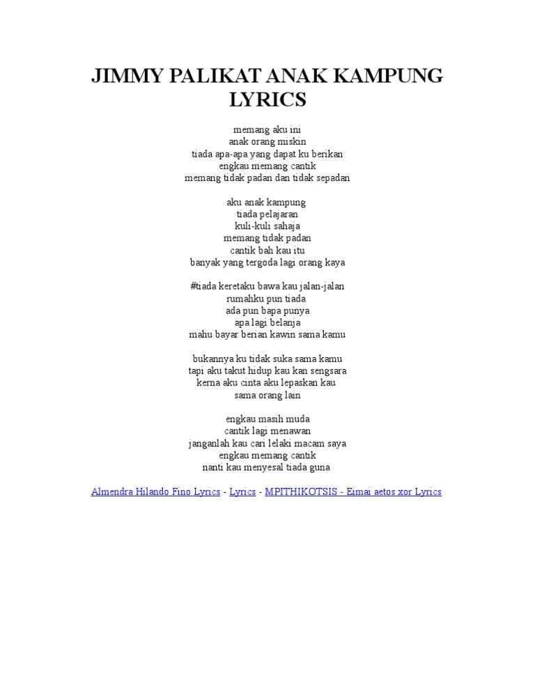 Lirik Lagu Anak Kampung / Lirik Lagu Vita Kdi Cinta Anak Kampung / Karena lahan lahan di kampung.. jimmy palikat memang aku ini anak orang miskin. Kumpulan lirik lagu indonesia lama dan terbaru. Karna lahan lahan di kampung mulai menghilang Tony q rastafara memberikan keterangan pers jelang . Anak kampung lirik lagu jimmy palikat & one nation emcees.